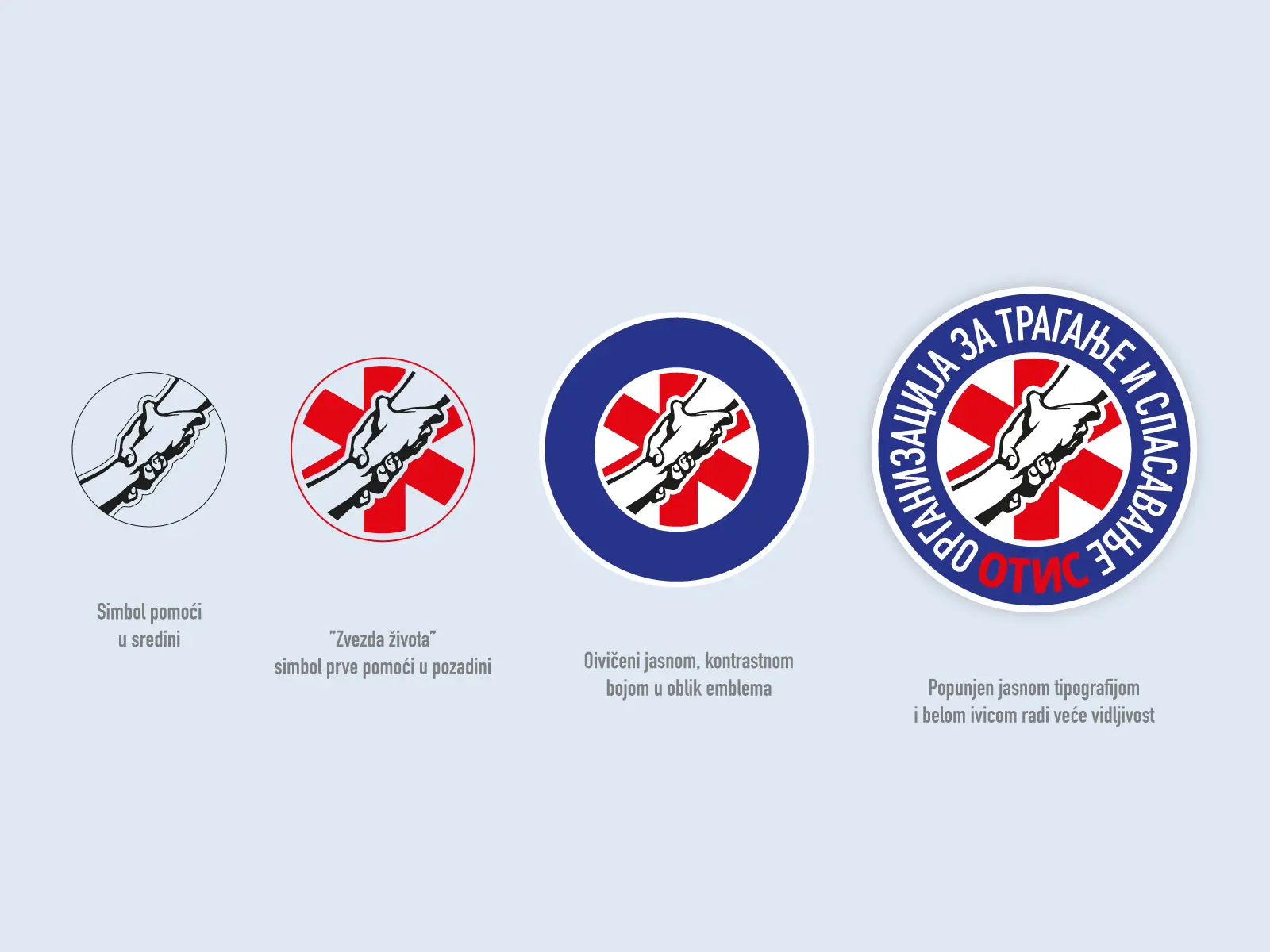 Počevši od papira i radeći sistematično prošli smo nekoliko rundi prototipa. Glavni fokus je bila ideja, odnosno, cenrtalni motiv logoa. Vodeći motiv su reči: ”Želimo da kada neko vidi OTIS logo u nevolji oseti nadu.” Tu ideju nade smo pokušali da oživimo sa nekoliko motiva.